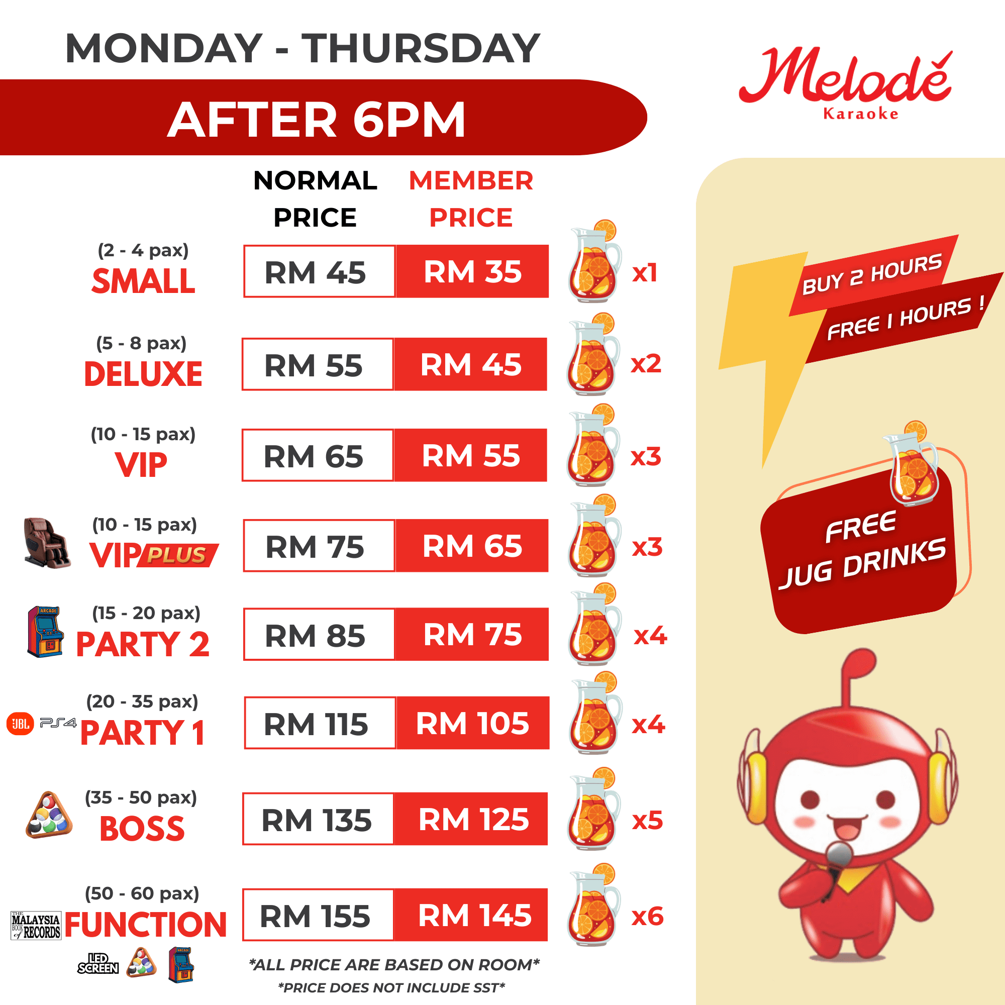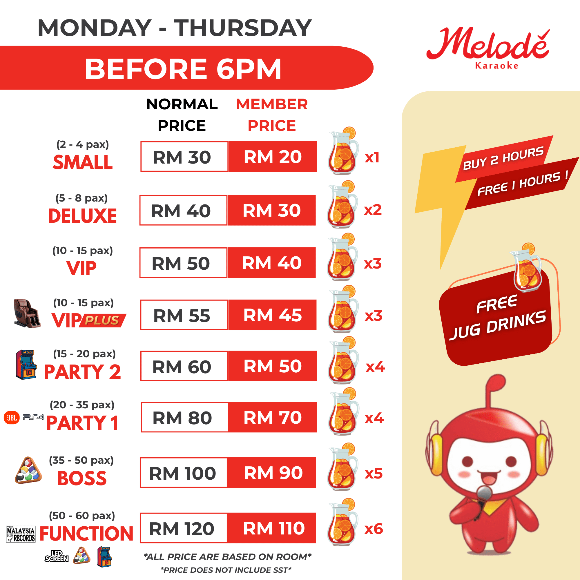 • RM38 (Permanent) • Buy 1 hour, Free 1 hour (Every Wednesday) • Birthday Month (Free 2 Hours)