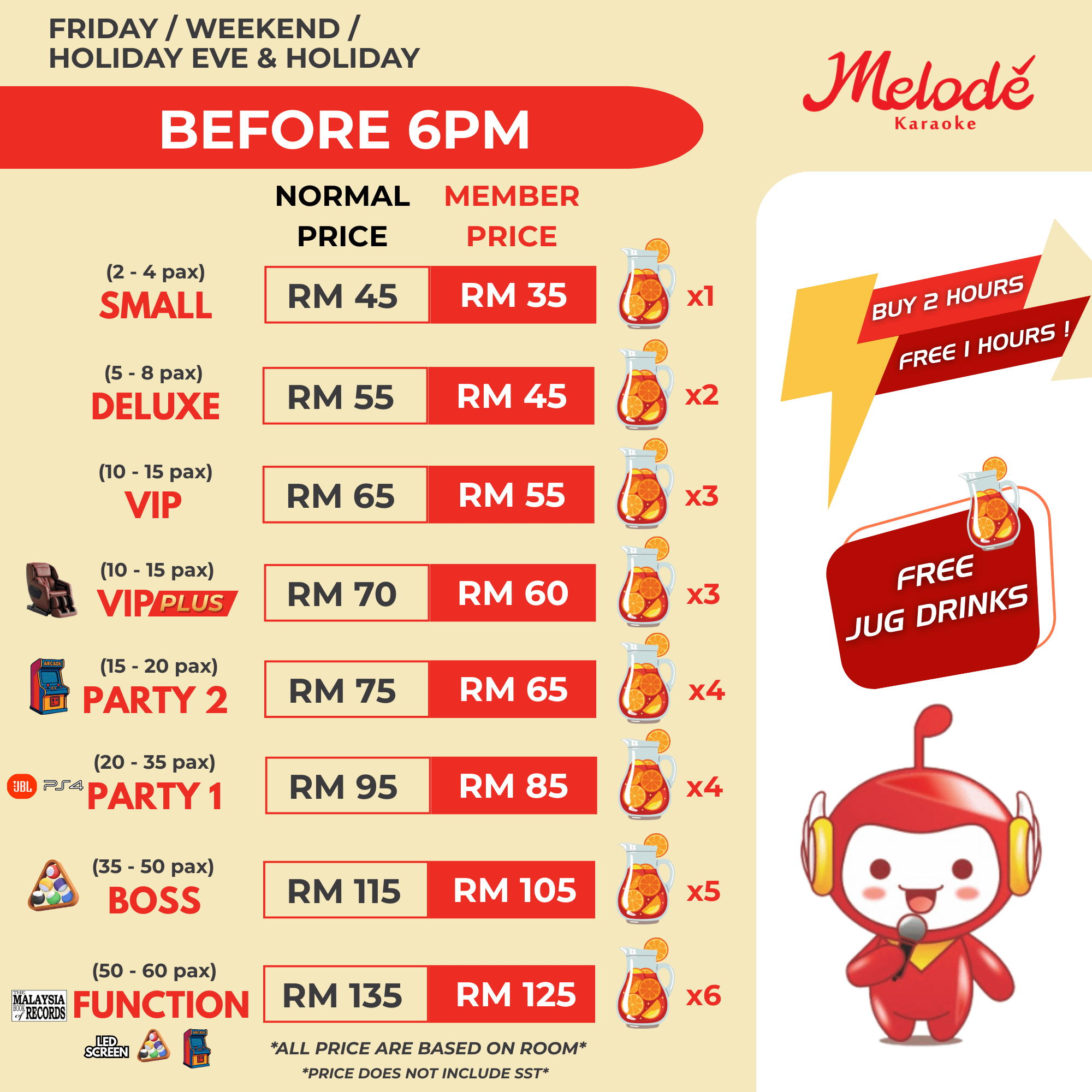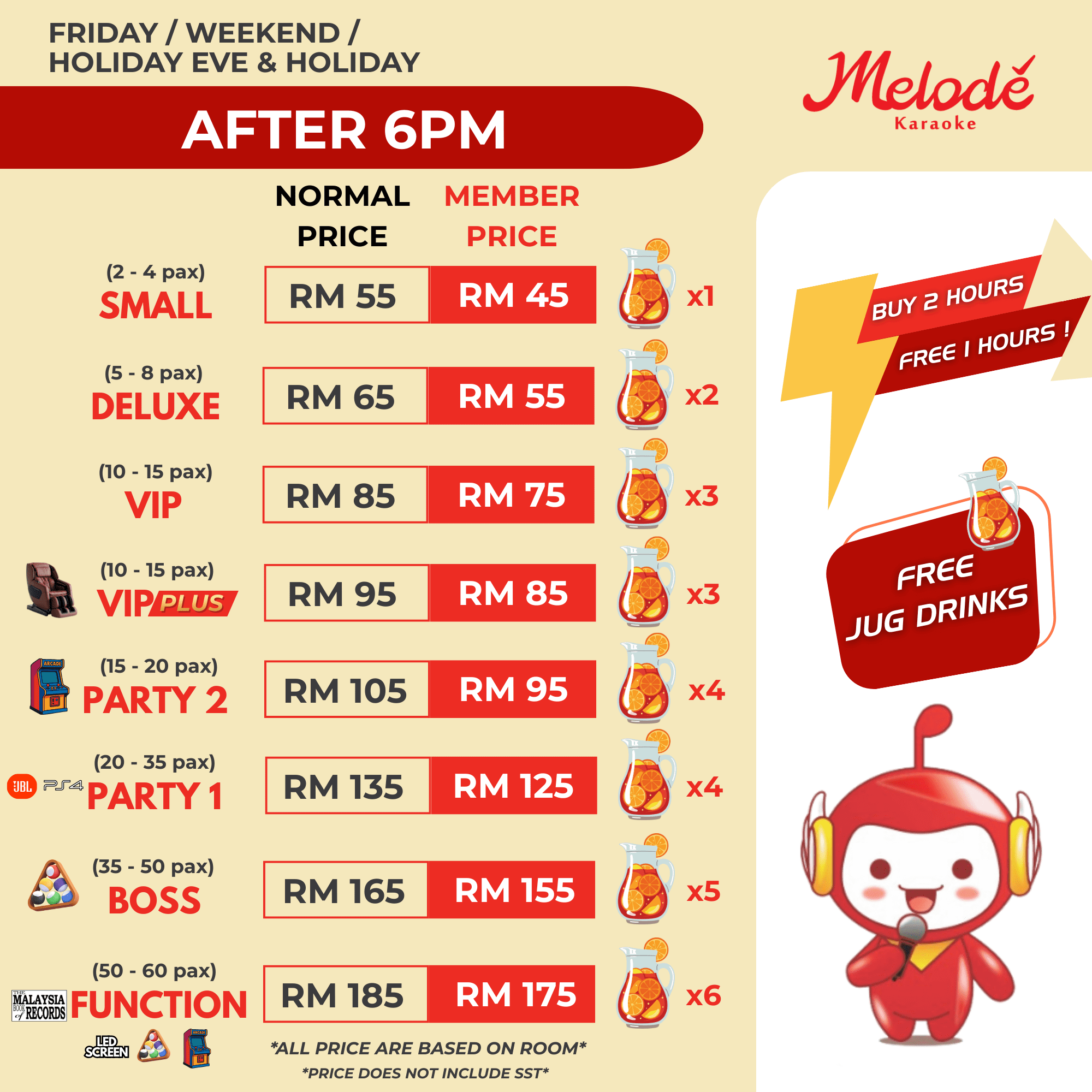 • RM38 (Permanent) • Buy 1 hour, Free 1 hour (Every Wednesday) • Birthday Month(Free 2 Hours)