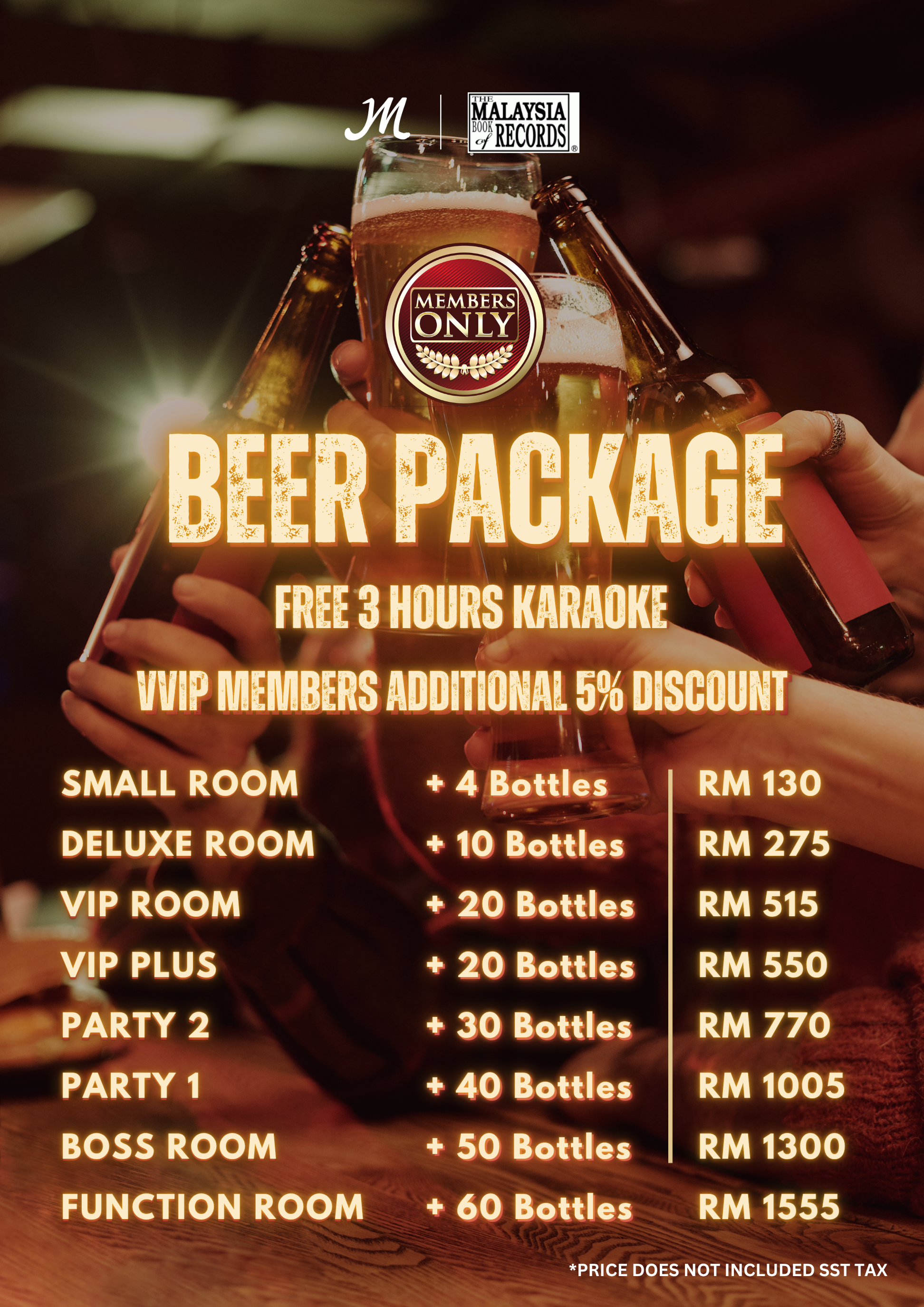 • Member Price • Beer Package• RM38 (Annual Renew) • Free 2 hour (Every Tuesday) • Birthday Month (Free 3 Hours)