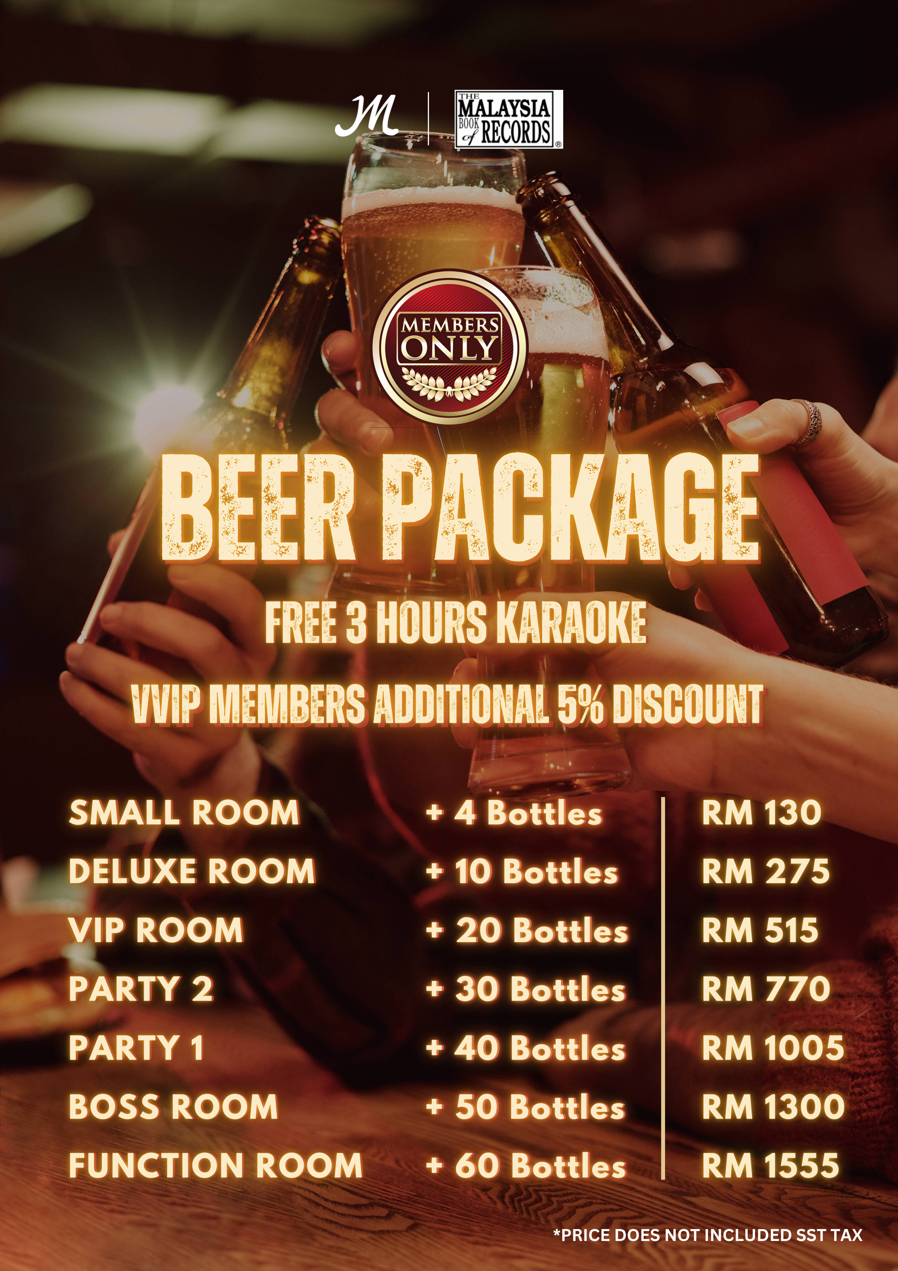 • Member Price • Beer Package• RM38 (Annual Renew) • Free 2 hour (Every Tuesday) • Birthday Month (Free 3 Hours)